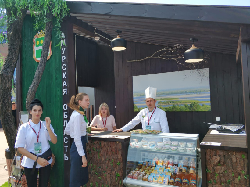 Ароматными напитками угощала на «Зеленом островке амурских экспортеров» франшиза амурского кофе DO.BRO Coffe. Она вызвала большой интерес у иностранных делегаций. Всего на «островке» работали 11 амурских компаний. Шесть из них презентовали бобовые, зерновые и продукцию из них — соевое масло, муку, шрот. На прилавке была и амурская гречка.