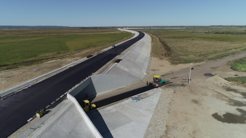 Работы по строительству дороги выполнены на 85 процентов. Закончены основные объемы на мостовых сооружениях, на завершающей стадии находится укладка асфальтобетонного покрытия. Сейчас строители укрепляют откосы монолитными железобетонными плитами, готовность составляет 88 %. На всей протяженности трассы устанавливаются локально-очистные сооружения. Таковы нормативные требования к автомобильным дорогам второй технической категории