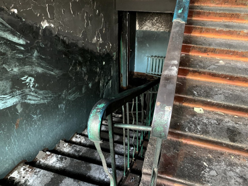 В обугленном подъезде до сих пор чувствуется жар, идущий от сгоревших деревянных перегородок. Квартира Таисьи Футунгуевой — оказалось одной из первых на пути огня.