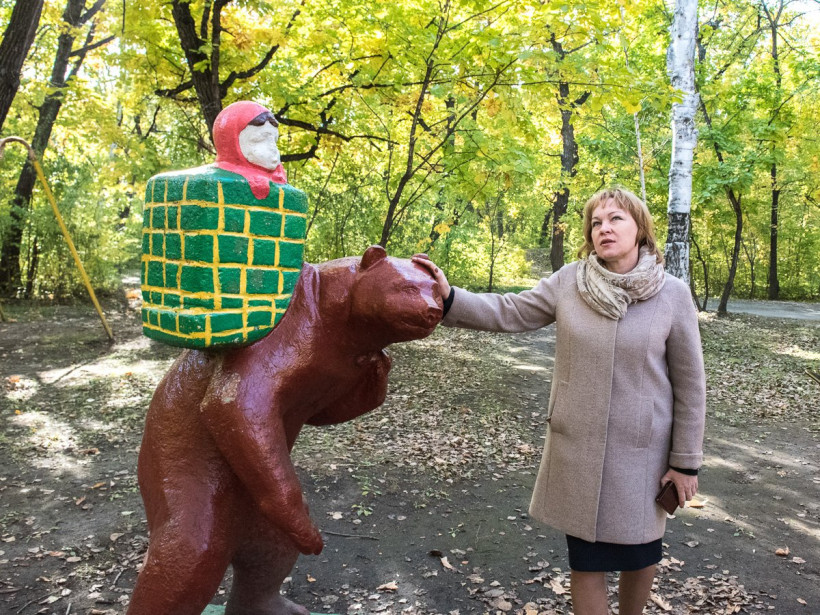 В Первомайский парк Светлана Яковлева приходит все эти годы: и молодой мамой, и счастливой бабушкой. Со времен детства, признается министр, здесь мало что изменилось. Те же тихие аллеи, те же качели, та же скульптура Маши и медведя. «Только в нашу школьную пору у него нос был отбит, а сейчас исправили», — улыбается Светлана Вячеславовна и трет медведя по носу.