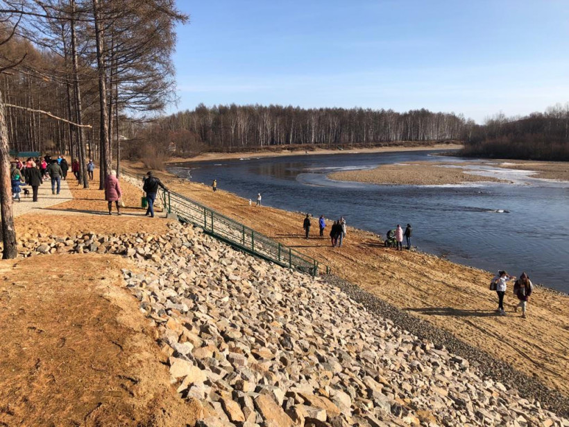 Удобную и благоустроенную пляжную зону открыли сегодня на левом берегу реки Тында. Местные жители уже называют место отдыха набережной.