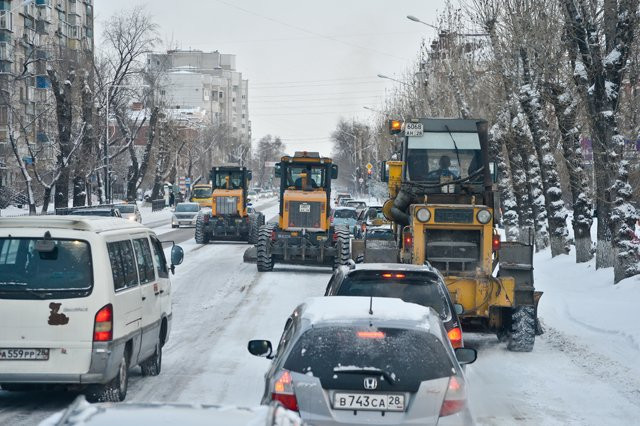 Вся дорожная техника ГСТК вышла на уборку снега в Благовещенске
