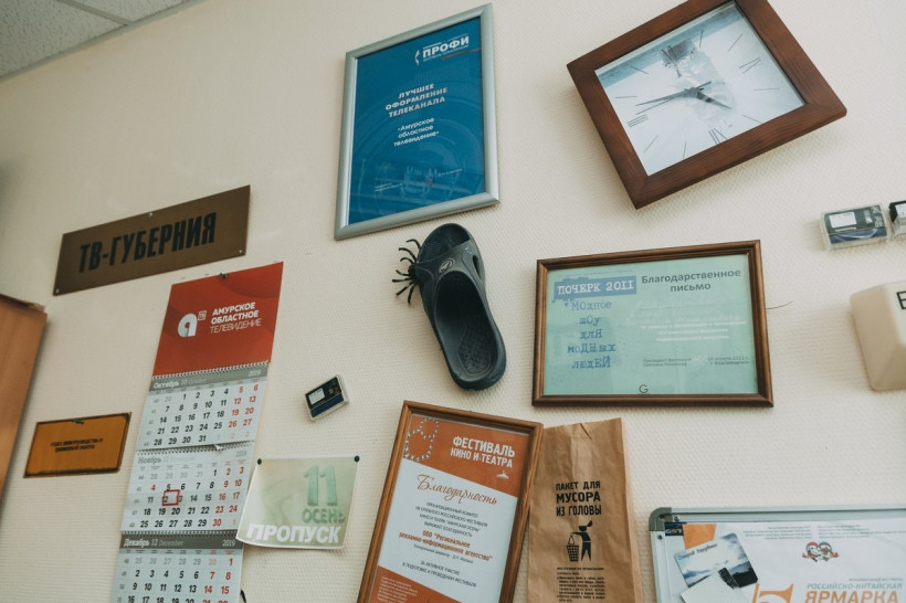 Большая студия по соседству предназначена для новостей, политических дебатов и визитной карточки АОТВ — программы «В центре внимания». Корреспондент Анастасия Петраш только закончила здесь запись проморолика к приближающемуся юбилею телекомпании. На ее место под свет прожекторов уже готовится сесть известная амурская телеведущая Оксана Холодова. На мой вопрос, получается ли у журналиста с двадцатилетним стажем записывать программы без дублей, она честно ответила: «Да». А потом добавила, что работает только в прямом эфире, где просто нет возможности перезаписи, нужно сразу говорить без ошибок.