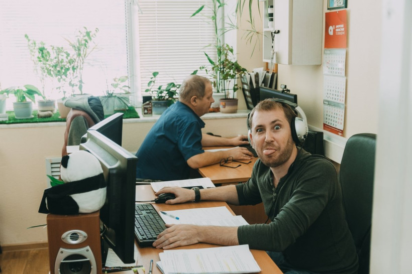 Все журналисты компании поместились в двух кабинетах — отдел программ и ньюсрум. Но застать корреспондентов сидящими на стульях — задача из области фантастики. Сколько бы компьютерные технологии ни завоевывали наш мир, журналисты по-прежнему добывают свой хлеб ножками. В каждом из кабинетов мы встретили по одному человеку, остальные были на выездах. О хроническом дефиците времени за своих хозяев красноречиво говорили отставший на несколько дней настенный календарь, недопитый кофе в кружках и легкий творческий беспорядок.