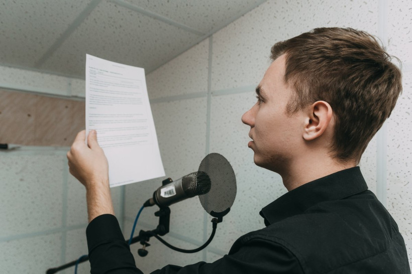 Мигающая красная лампа у студии звукозаписи ясно дала понять, что входить нельзя — убьет. Или покалечит сидящий за столом журналист, за то, что ему испортили «озвучку» сюжета. Мы, не понаслышке знакомые со страшным словом дедлайн, не стали испытывать судьбу, а просто подождали, пока комната освободится. Внутри кабинет оказался небольшим, оборудованным микрофоном для начитки текстов и компьютером для записи и редактирования получившегося звука. Стены покрыты мягким звукопоглощающим покрытием, чтобы устранить эхо и другие звуковые дефекты.