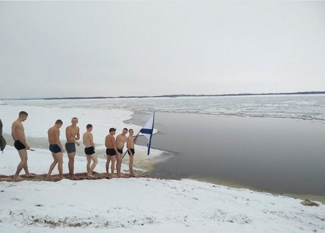 Курсанты ДВОКУ устроили заплыв в ледяной воде в преддверии Дня морской пехоты. Группа моржей из 40 двоковцев пробивались сквозь льды в месте слияния рек Амур и Зея. Впереди с флагом морской пехоты плыл курсант Марк Мынкин. День морской пехоты в России отмечается сегодня, 27 января.
