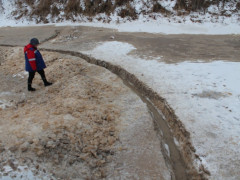 «Амурские коммунальные системы» помогают железнодорожникам справиться с подтоплением в Моховой Пади. Проходящие через поселок железнодорожные пути заливает вода подземных ключей, вышедшая на поверхность в морозы. Несмотря на то, что труба, из которой идет вода, не находится в ведомстве АКС, специалисты компании ее осмотрели, чтобы найти причину подтопления.