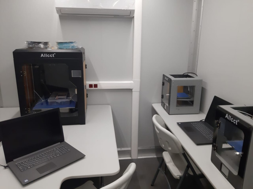 — Мобильный технопарк, который поступил в Амурскую область, — самый большой в России, — отметила руководитель передвижного центра Наталья Домашенко. — Длина автомобиля составляет почти 14 метров, его высота – около четырех метров, а ширина в разложенном состоянии — 5,5 метра. В машине есть проектная и рабочие зоны, а также зона хранения.
