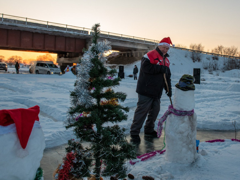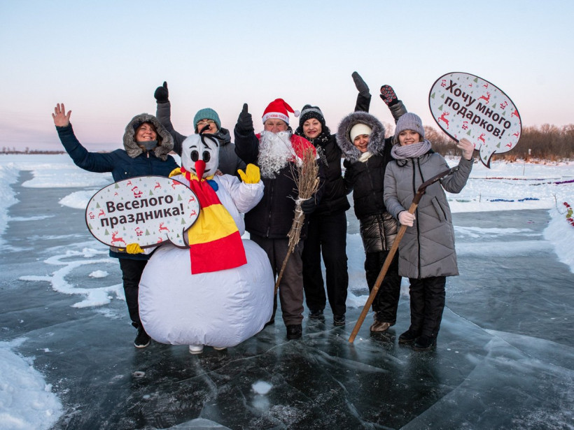 Главным героем новогоднего праздника стал знаменитый дедушка ВалерийНеобычайно холодной выдалась суббота, 21 декабря: минимум -30. Синоптики констатировали: на Благовещенский район опустились аномальные холода. Но испытание морозом прошли самые отзывчивые сердца. Десятки людей приехали из других городов, а жители Маркова привезли на санках детей на реку Хомутину. О небольшом и самом обыкновенном амурском селе в последние годы идет молва, без преувеличения, по всей планете. Потому что здесь живет Дед Валерий — автор уникальной ледовой открытки.
