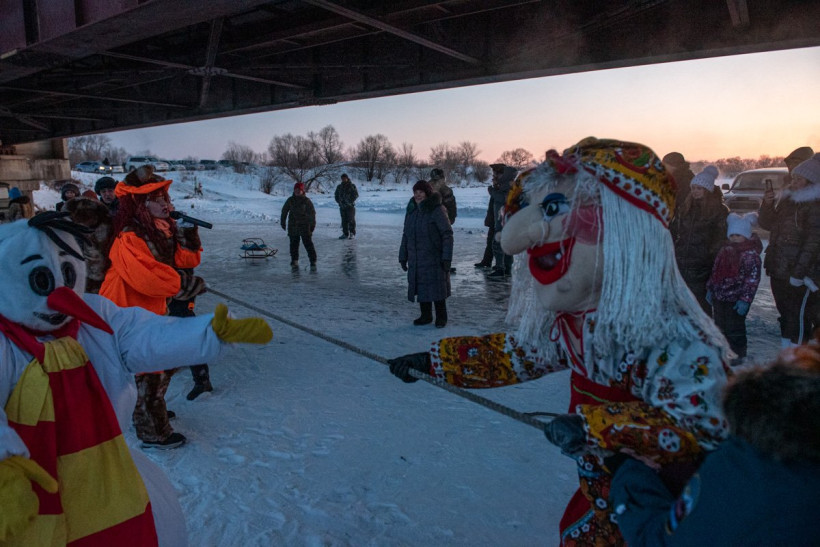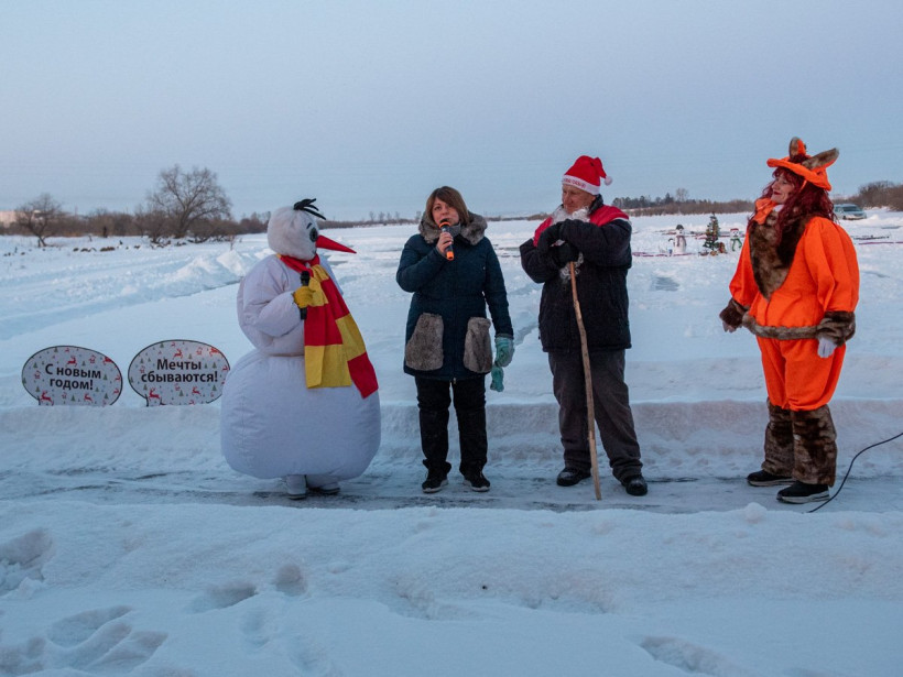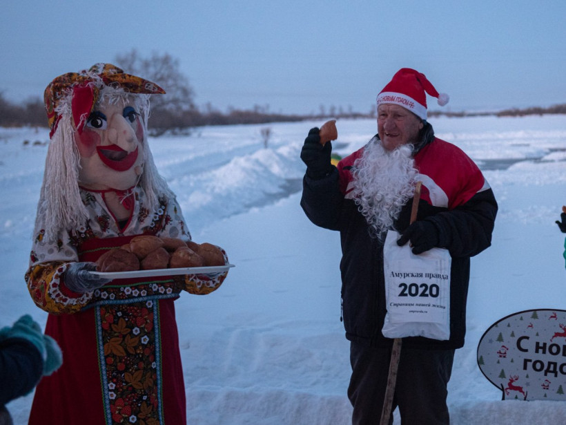 Валерий Константинович с самого утра расчищал занесенную снегом картину и украшал снежную елку мишурой. Грядущий 2020 год встречали танцами и перетягиванием каната. Гостей развлекали Бешеная белка и Снеговик, на торжество подоспели и Дед Мороз со Снегурочкой. Нарядная Баба-яга угощала всех пирожками и горячим чаем, а главный редактор «Амурской правды» Елена Павлова раздавала самым маленьким сладости.