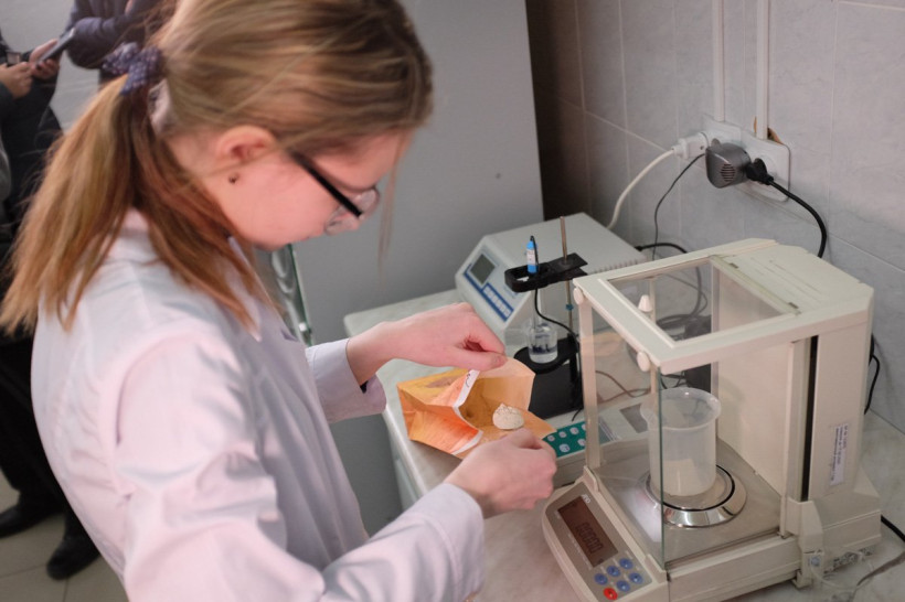 За первые сутки цех произвел около 15 тонн соевого изолята. Один килограмм в качестве пробы забрали специалисты центральной лаборатории МЭЗа, она находится в отдельном здании. Этот килограмм эксперты поделили на несколько частей весом от 5 до 10 граммов, в зависимости от вида анализа. По словам главного технолога завода Аркадия Тихонова, продукт оправдал нормы по доле ключевого компонента: в изоляте — 90 процентов белка.
