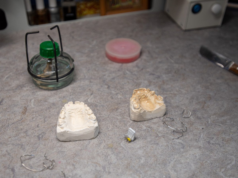 В зуботехнической лаборатории еще до официального открытия вовсю кипит работа — специалисты делают слепки по зубам детишек, которым нужно исправить прикус.
