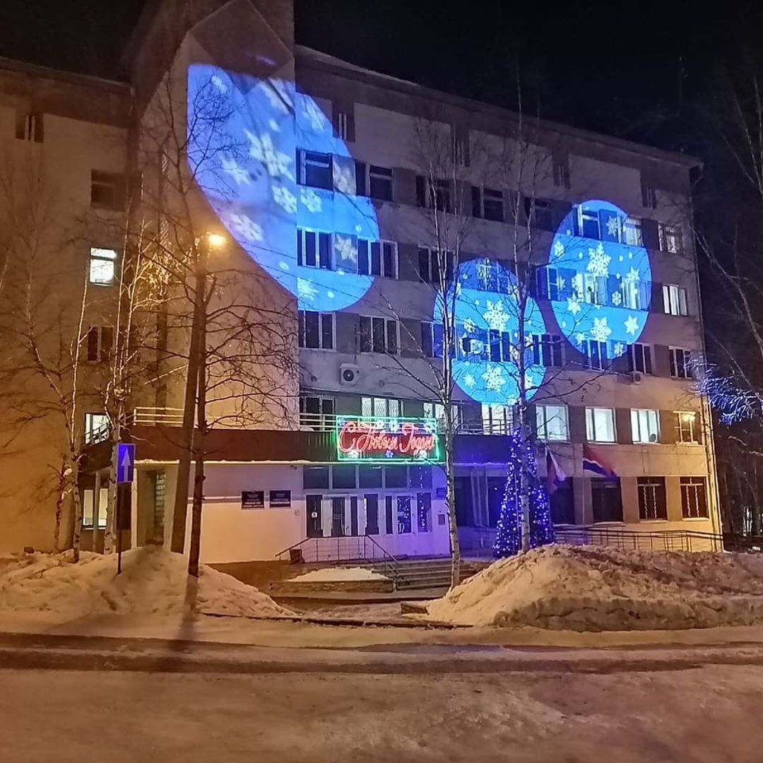 Вот так администрация Тындинского района украсила свое здание. К традиционной ёлке прибавились в этом году светодиодные олени, а на стены проецируются ёлочные шары. Спасибо Максиму Ермакову за фото.