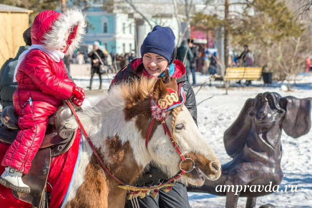 В представлении будут задействованы шесть верховых лошадей, два пони и один конь-тяжеловоз, запряженный в сани. Фотографии на память амурчане смогут сделать в необычных фотозонах.