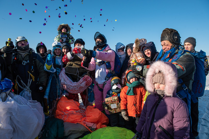 Десять бойцов в новогодних костюмах спланировали на окраину Благовещенска с борта самолета АН-2, с высоты 1 200 метров. На земле, где их уже ожидали удивленные дети, Дед Мороз и Снегурочка раздали подарки.