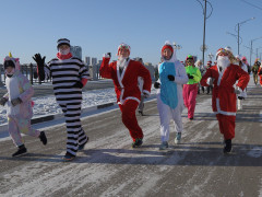 Деды Морозы, Снегурочки и сказочные герои пробежали по набережной Благовещенска 1 января