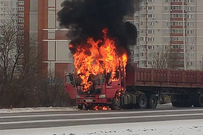 В четверг, 23 января, в Благовещенске горел большегруз. Пламенем была объята вся кабина. Пожар произошел в микрорайоне на улице Студенческой.