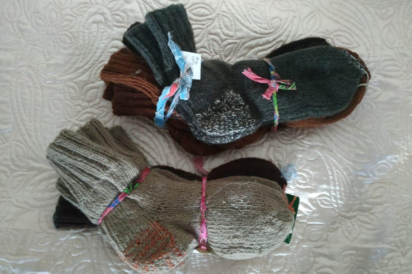 Носочки у бабы Гали стоят 500 рублей, рукавички — 300 рублей.