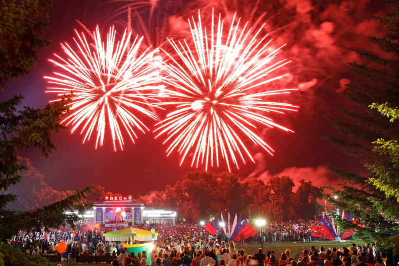 Цветовое шоу из желтого, оранжевого, зеленого и двух оттенков красного цвета увидят жители и гости города в небе над центральной площадью в 21:00. Залпы будут произведены с помощью салютной установки 2А30 на базе машины «Урал». Их разместят на берегу реки Томь.