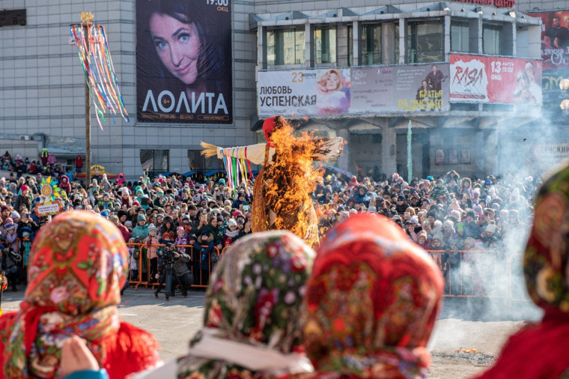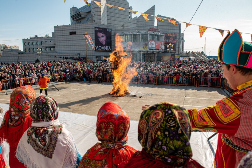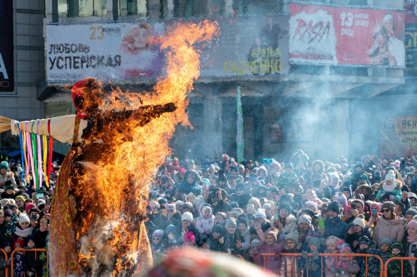 Гори синим пламенем: вместе с чучелом Масленицы благовещенцы сожгли свои обиды и несчастья (фото)