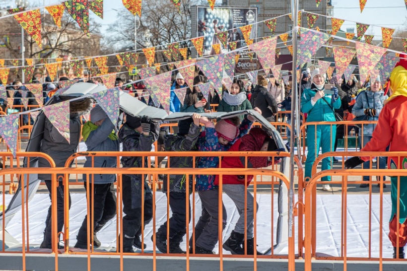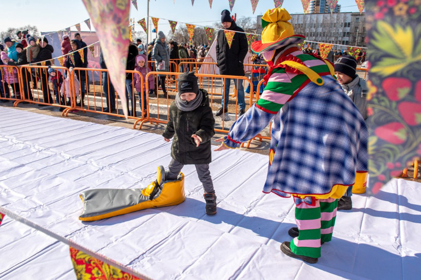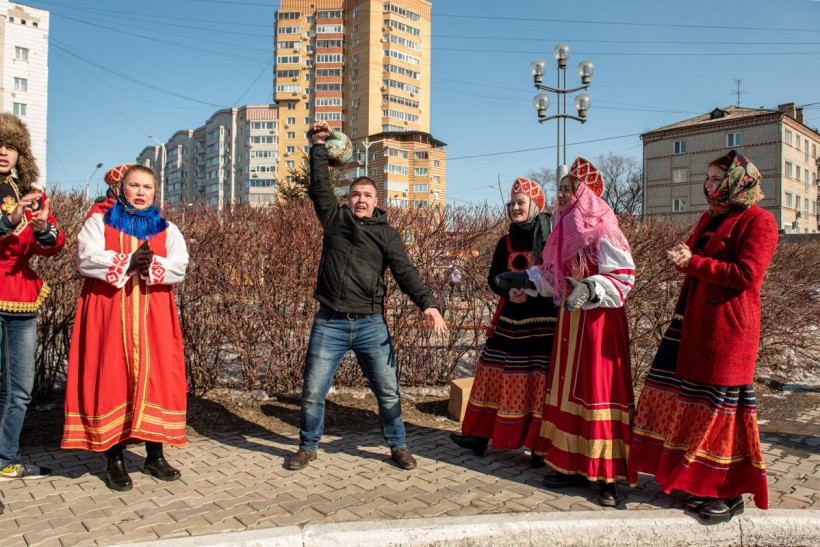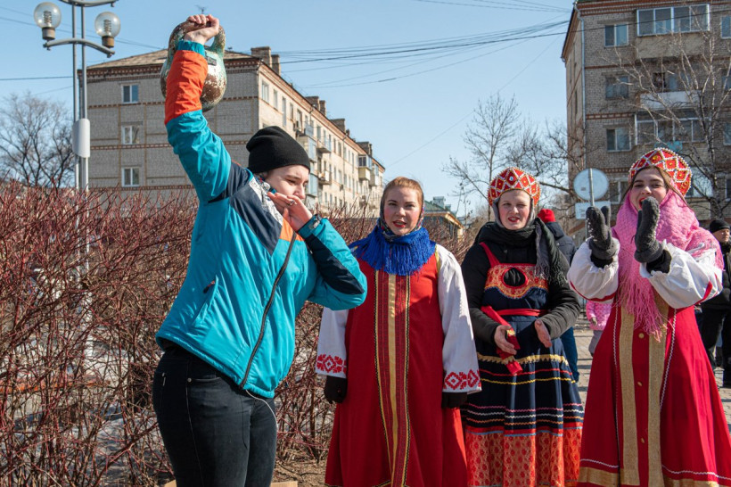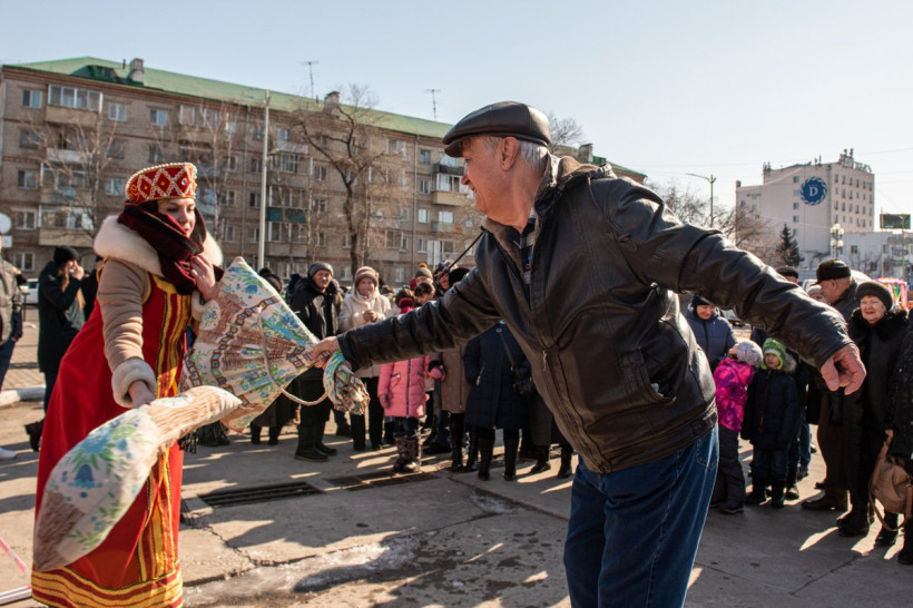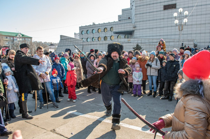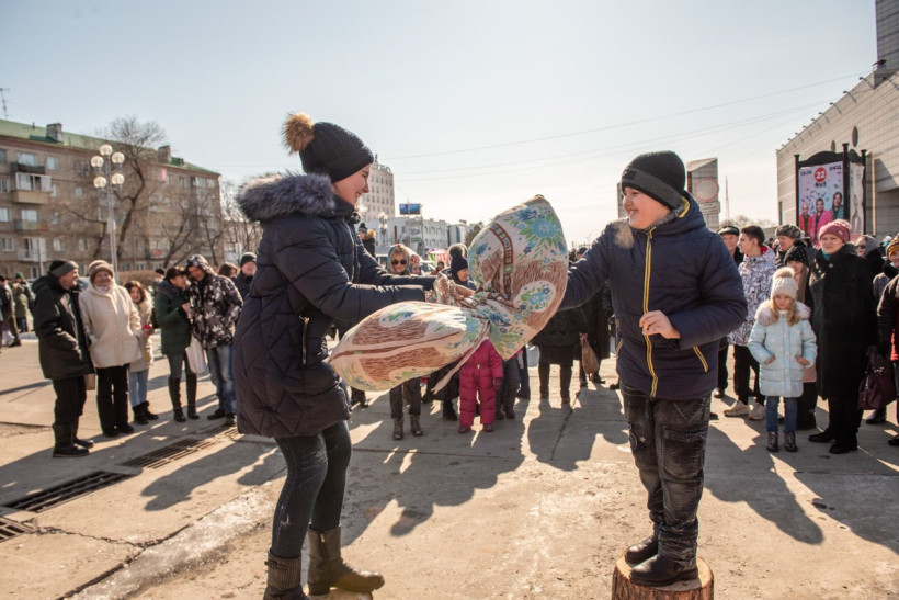 В Благовещенске широко отпраздновали Масленицу. На первый день весны пришлись проводы зимы и народные гуляния. На площади ОКЦ восемь тысяч жителей и гостей областной столицы участвовали в шуточных соревнованиях — дрались подушками, рубили дрова, перетягивали канаты. Смельчаки один за другим традиционно пытались покорить шестиметровый столб. И, конечно, все угощались блинами — главным лакомством Прощеного воскресения. Кульминацией праздника стало сжигание чучела Масленицы. В огне сгорели и записки амурчан, на которых они описали свои печали и неудачные моменты в жизни. Гулял на площади и фотокорреспондент АП Андрей Ильинский.