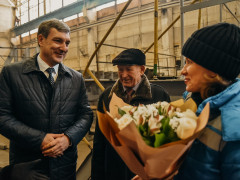 Василий Орлов подарил цветы в честь 8 Марта строительницам кораблей
