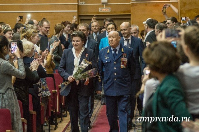 День космонавтики в 2016 году Валентина Терешкова встретила в Циолковском, вместе с Алексеем Леоновым впервые побывала на объектах Восточного.