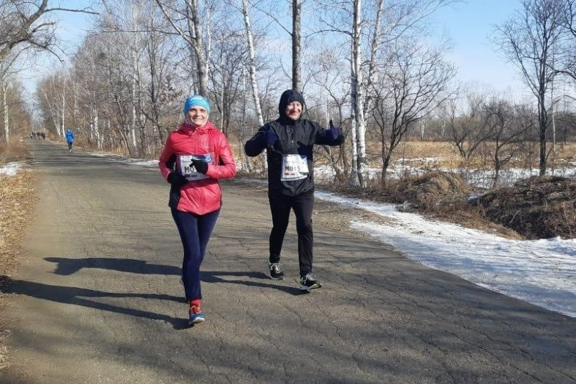 В Биробиджан отправилась команда из Благовещенска в составе девяти человек. Трое — Ирина Акимова, Александра Дашкевич и Анна Захарова пробежали по 15 километров, Татьяна Мамина открыла сезон очередным полумарафоном (21 км), а Александр Егоров и Татьяна Вешкина пробежали марафон (42 км). К слову, Татьяна, которая первую тренировку клуба «Бег к мечте» посетила в марте 2019, на этих соревнованиях среди женщин показала второй результат.