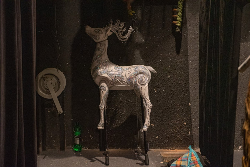 Кстати, для того чтобы крыша переливалась самоцветами, в спектакле «Серебряное копытце» использовали рекордное количество гирлянд и светодиодных лент — более 200 метров.