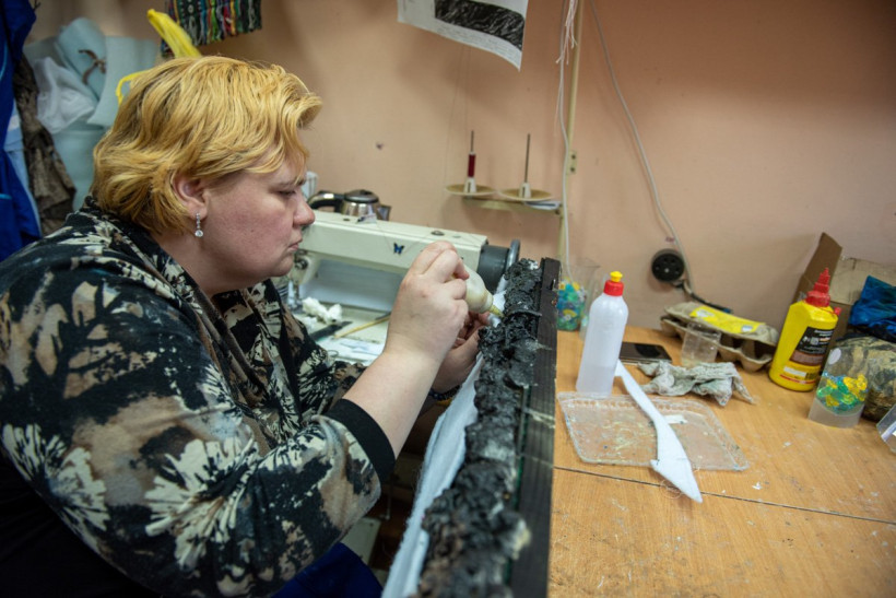 В небольшой комнате, бутафорской, работают над созданием величественных уральских гор — с самоцветами, слюдой и алмазами.