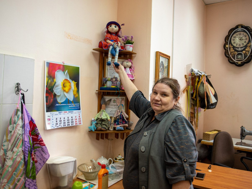 Швейную мастерскую украшают куклы, которые не выходят на сцену, — творения швеи Ольги Патриной, которая проработала в театре больше 20 лет. Однако она до сих пор помнит свой первый сшитый костюм.