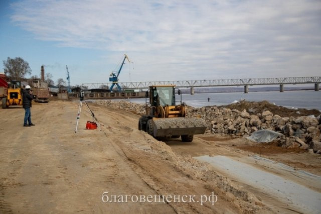— К работам мы приступили в январе текущего года, все подготовительные этапы уже завершены. На сегодняшний день строители перешли к земельным — отсыпают берег скальным грунтом, песчано-гравийной смесью, — рассказал главный инженер подрядной организации Павел Ельчин. — Параллельно ведется подготовка к выполнению железобетонных работ. Всего будет установлено 3 000 кубометров монолитных элементов. Данный участок будет выполнен в единой концепции с набережной реки Амур. По графику к благоустройству территории мы перейдем только в следующем году, но по возможности постараемся эти сроки сократить.