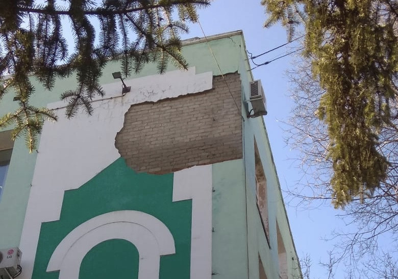 – Утром со стороны улицы Садовой со стены отвалился слой затвердевшего строительного раствора, — рассказала директор службы по обеспечению деятельности органов местного самоуправления Татьяна Басос. — Без облицовочного покрытия осталась часть здания площадью около 10 квадратных метров. Хорошо, что в этот момент на том месте никого не было.