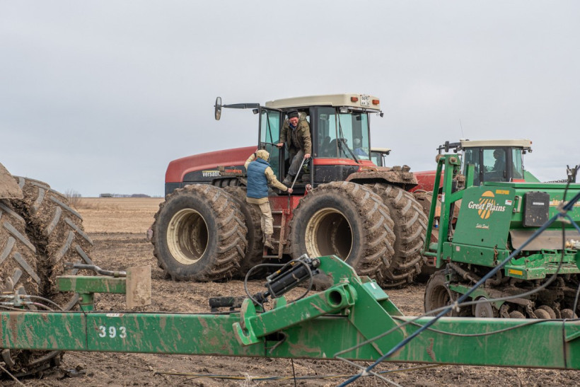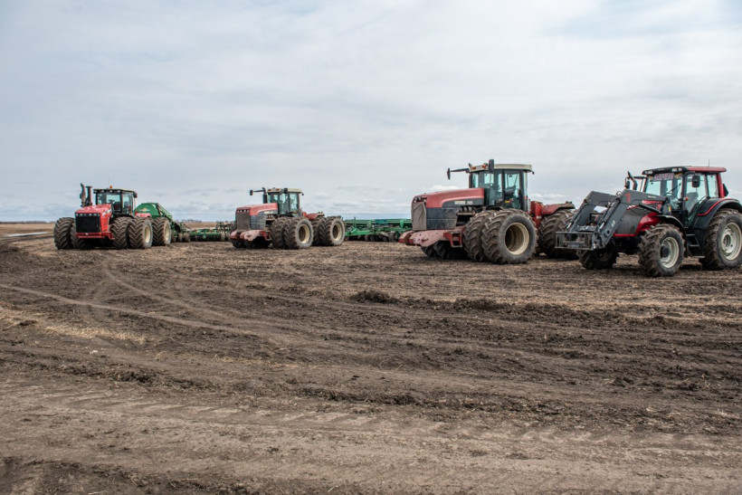 После уходящих за горизонт тракторов пыль стоит столбом. Но апрельский ледяной ветер быстро подхватывает ее и развеивает. Капризы погоды хоть и вносят свои коррективы, но не сбивают темпов работ. Ячмень на полях предприятия занимает чуть больше тысячи гектаров. Работники фирмы засеяли уже больше половины площади. К концу недели с этой культурой специалисты планируют закончить.