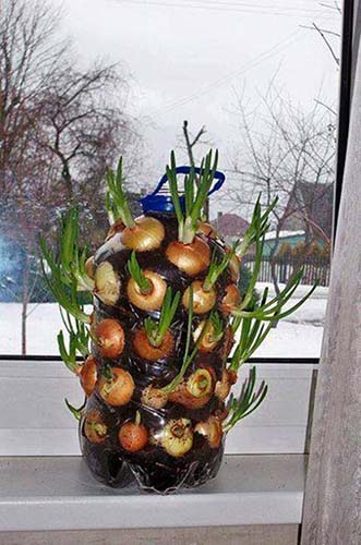 Зеленый лук удобно выгонять, например, в банках с водой или многими другими способами.