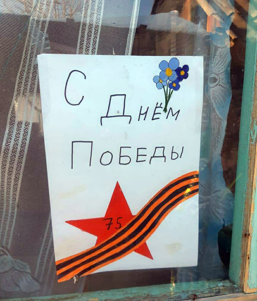 Дети Зейского района выставляют рисунки на окнах ко Дню Победы. Ученица 8 класса поселка Береговой Антонина тоже решила принять участие в акции «Открытка в окне».