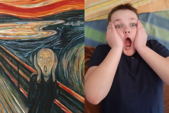 В последние дни самые увлекательные странички в «Инстаграме» у маленьких артистов из «Театр+». Творческое задание выбрать из предложенных картин одну и попробовать ее воспроизвести дома из подручных материалов превратилось в увлекательную игру. Маленькие артисты уже оживили портрет Шаляпина, наприсованный Борисом Кустодиевым, автопортрет Зинаиды Серебряковой и даже «Крик» Эдварда Мунка.