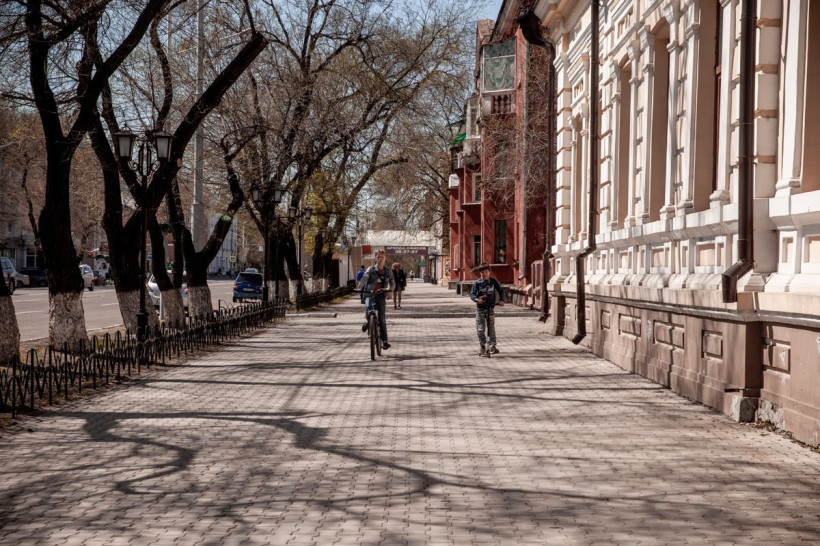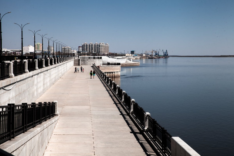 В амурскую столицу в первые дни мая успело заглянуть настоящее весеннее тепло и ясное небо. Вчера, в нерабочую среду после первых майских праздников, столбики термометров показали в Благовещенске +18.. +20 градусов. Несмотря на коронавирус и необходимость самоизоляции, горожане высыпали на берег пограничной реки полюбоваться на освободившийся ото льда Амур. Несколько отважных благовещенцев даже вышли загорать возле холодной реки, проигнорировав сильный западный и северо-западный ветер, разгулявшийся до 9 метров в секунду.