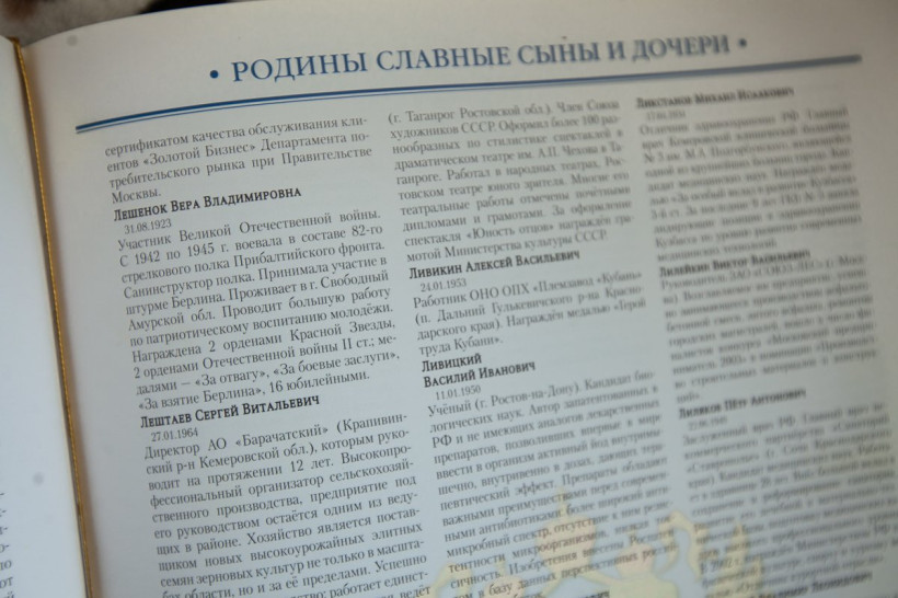 Вера Владимировна Лешенок (Дмитриева) родилась 31 августа 1923 года. Летом 42-го ушла на войну. Ее имя занесено в книгу «Лучшие люди России».