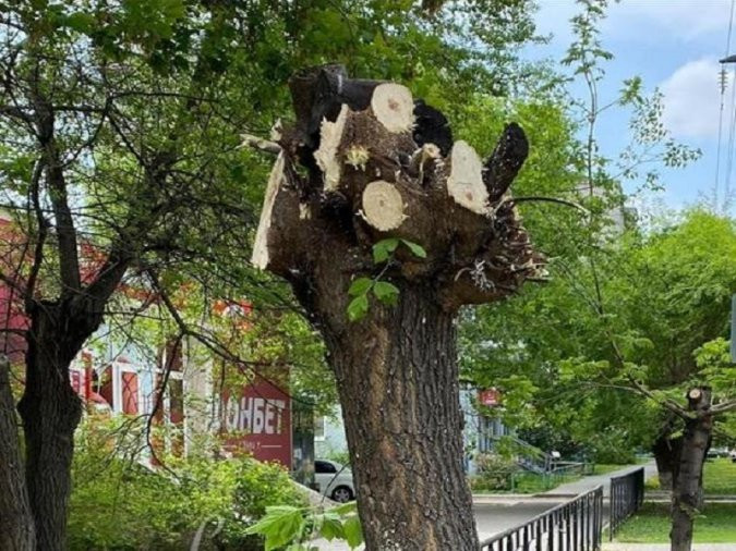В Благовещенске неизвестные спилили ветки дерева в центре города возле перекрестка Шимановского — Зейской. Инцидент произошел 23 мая. Сейчас мэрия ищет вандалов, которые самовольно грубо обрезали дерево, нанеся ему весомый ущерб.