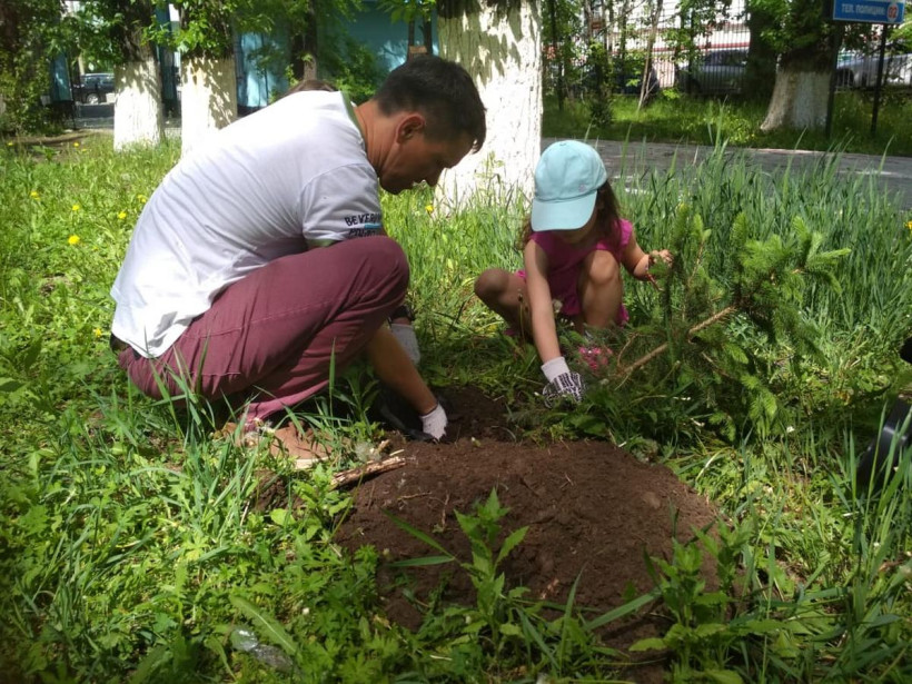 В День города благовещенцы высадили в парке голубые ели и абрикосы