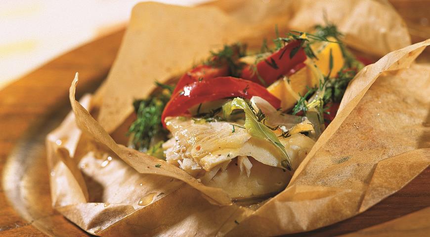 Камбала, запеченная в пергаменте