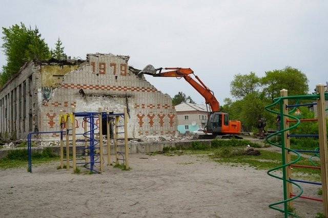 Аварийный спортзал сносят в микрорайоне ПМК Свободного. На его месте построят детский городок со спортивной площадкой и зоной отдыха. Демонтаж неподдающегося восстановлению здания начался 8 июня.