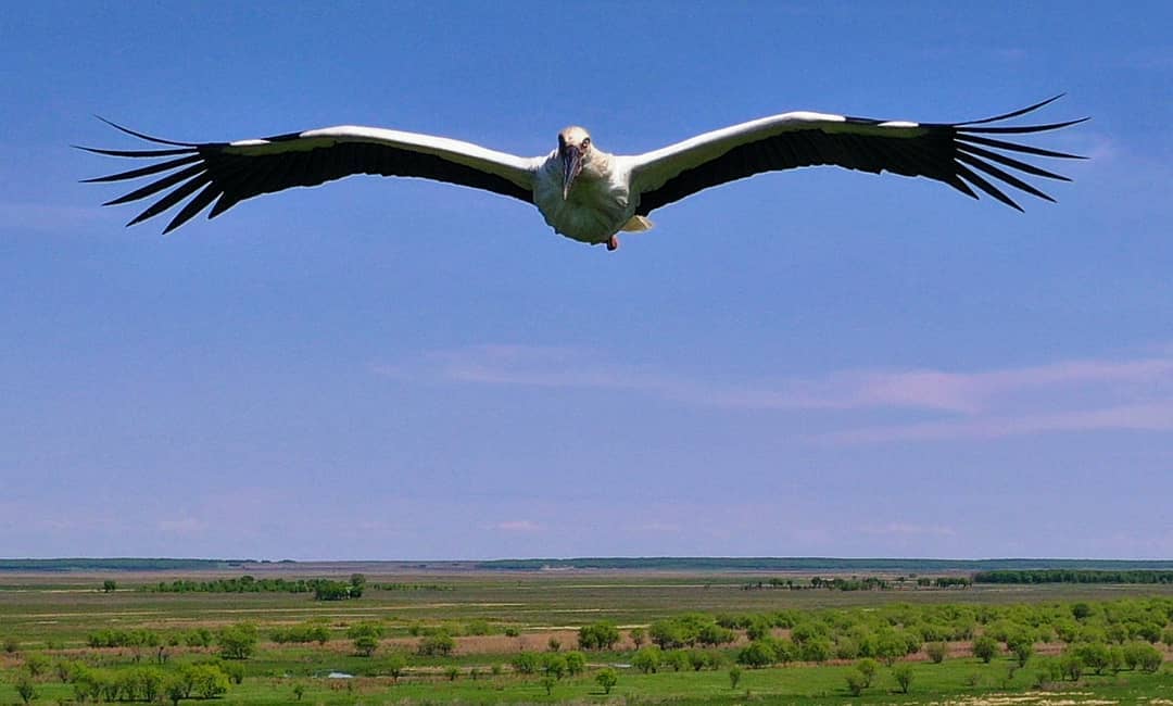 Онлайн-гнезда дальневосточного аиста в лучах вечернего солнца. Березовский заказник.