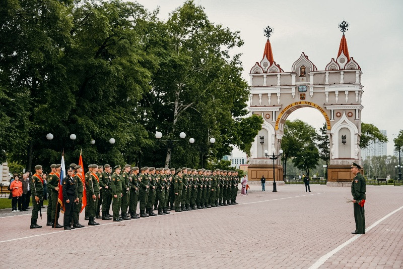День памяти и скорби в этом году проходит без масштабных массовых мероприятий из-за распространения коронавирусной инфекции. В Приамурье в традиционной церемонии возложения цветов к памятнику погибшим воинам-амурцам приняли участие представители областной и городской власти, юнармейцы и курсанты ДВОКУ.