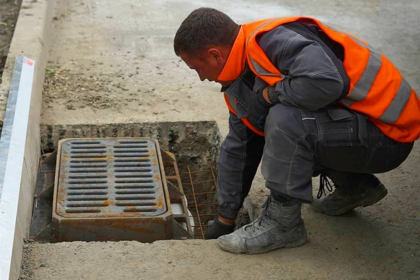 Вчера рабочие и специалисты подрядной организации АО «Асфальт» начали устанавливать дождеприемники ливневой канализации на участке Калинина от Тенистой до улицы Ломоносова.