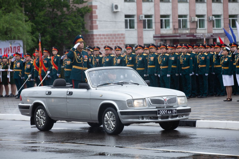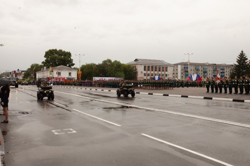 «Летающие» танки, мощные комплексы «Грады», мотовездеходы и снегоходы — всего 45 единицы техники торжественно проехали сегодня по центральной площади в Белогорске. Здесь прошел единственный в Приамурье парад Победы. «Парад проходит в особых условиях, — отметил губернатор Василий Орлов. — В соответствии с указом президента парад Победы в этом году проводится не 9 мая, а 24 июня, в честь парада, который 75 лет назад прошел на Красной площади в Москве». Из-за угрозы распространения коронавируса во время парада приняли беспрецедентные меры безопасности.