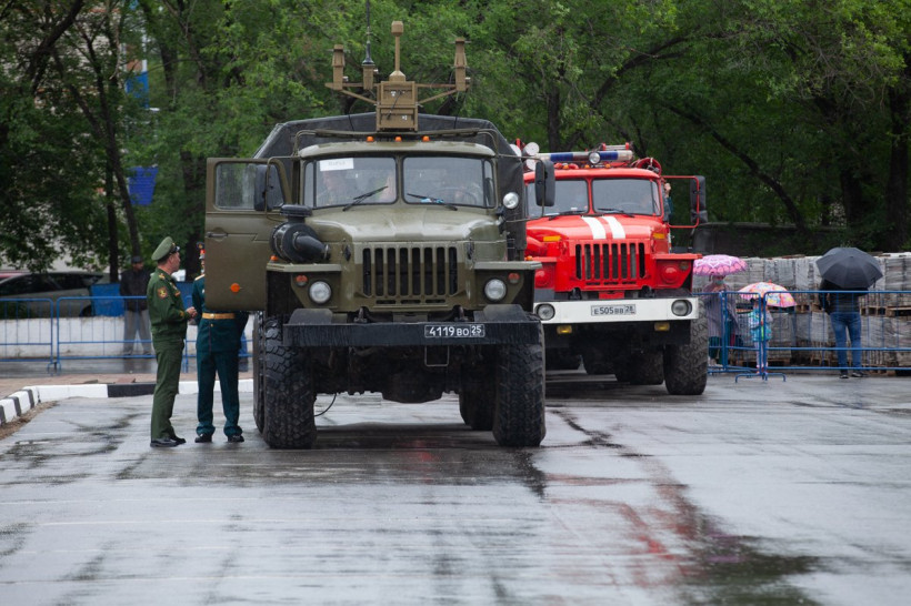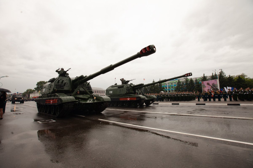 БТР, танки, самоходки, минометы, гаубицы, противотанковые ракетные и зенитно-ракетные комплексы — за несколько минут перед зрителями прошла военная техника 35-й Армии Восточного военного округа.