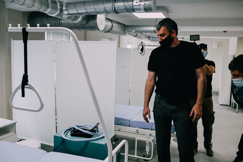 Рядом с основным корпусом госпиталя построено отдельное помещение для проведения компьютерной томографии. По словам Александра Гребенюка, обособленное одноэтажное здание возвели ради безопасности пациентов и медперсонала.