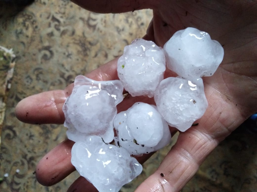 Гроза принесла в Грибское град размером с перепелиное яйцо и повалила деревья